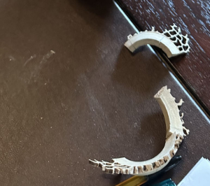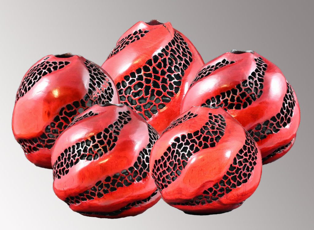 A “family photo” of several peel pieces that I made recently. I played around with slightly different shapes. I had originally intended that these pieces would be left natural and lacquered but after finishing Anar with red dye I decided to use red dye on the new pieces. All of the pieces are between about four and five inches in diameter and between about five and seven inches tall.